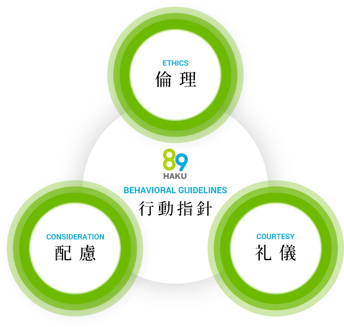 私たちの考える人物像は、行動指針の元「倫理・配慮・礼儀」に基づいています。